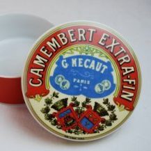 A beautiful porcelain Camembert Baker or Camembert serving dish. The lid has the classic french design with recipe card and matching box.
